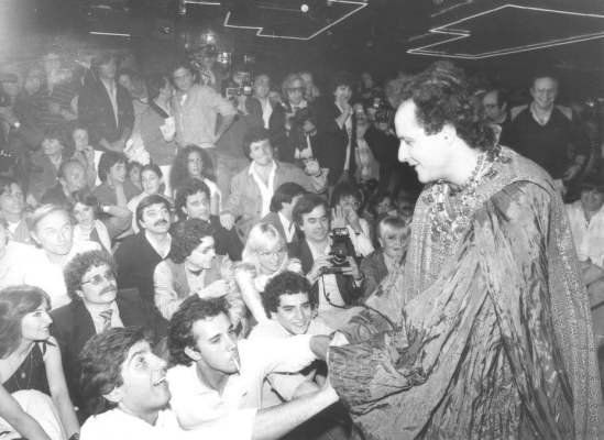 In occasione delle Solenni Cerimonie per l'Anniversario Simbolico della Sua Settima Reincanazione del Terzo Ciclo Superiore, il Sommo Opifice e Primo Teurgo della Chiesa dei Viventi benedice il Suo popolo osannante che brama sfiorare il Suo Corpo Divino. (Genova, Italia, Maggio 1981)